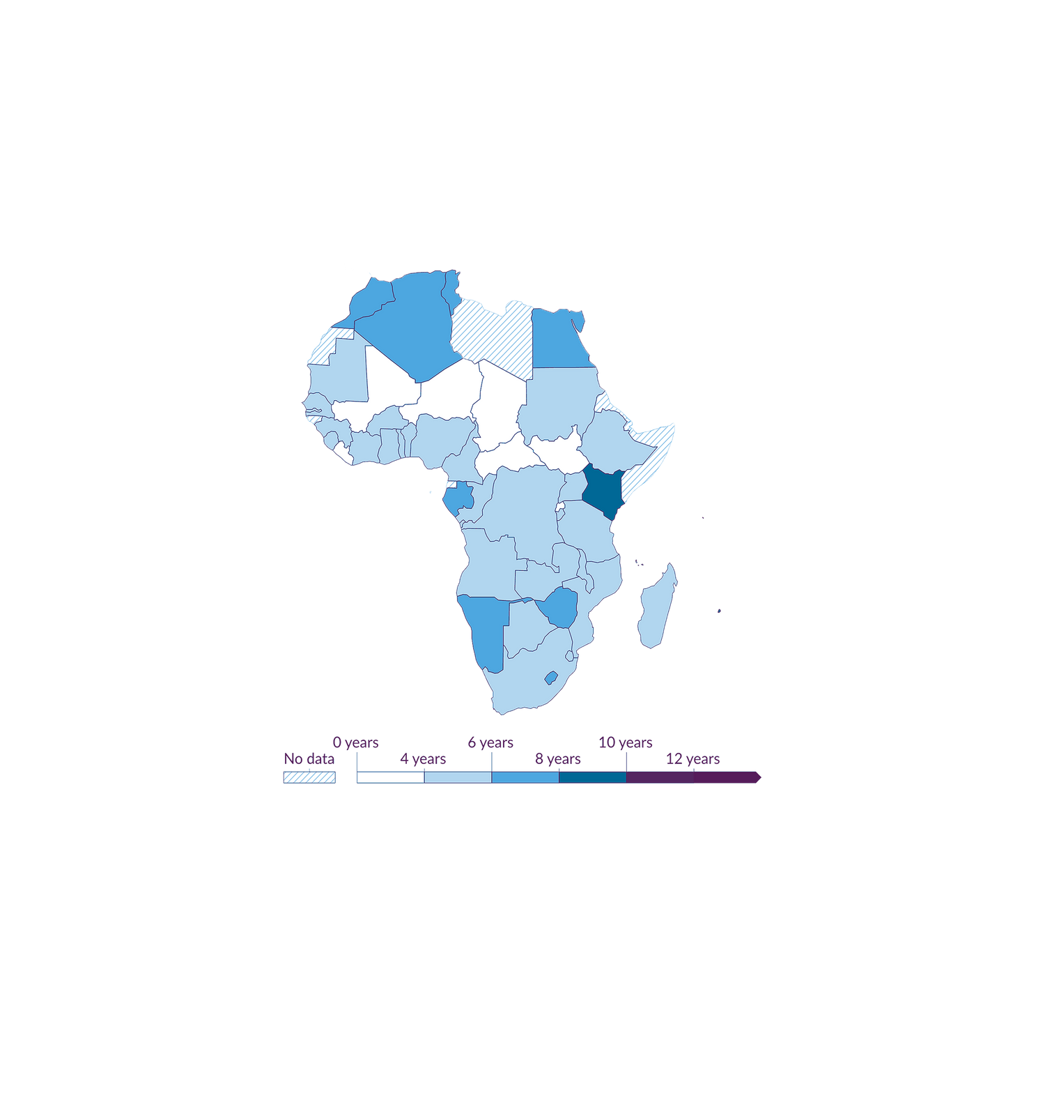 This map depicts Learning-Adjusted Years of Schooling in Africa, showing how much effective education students receive.